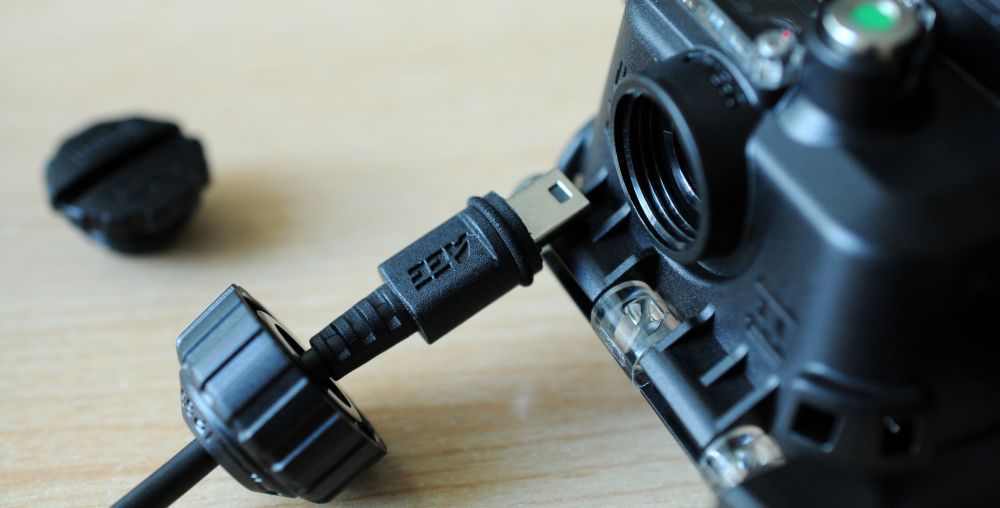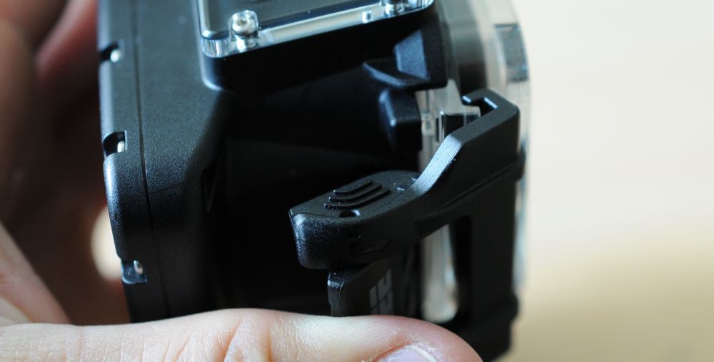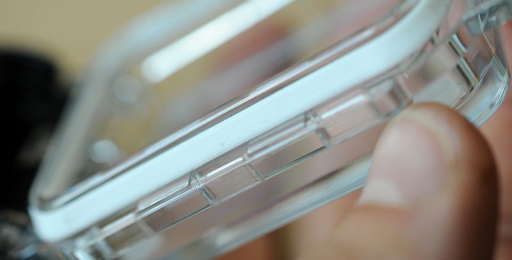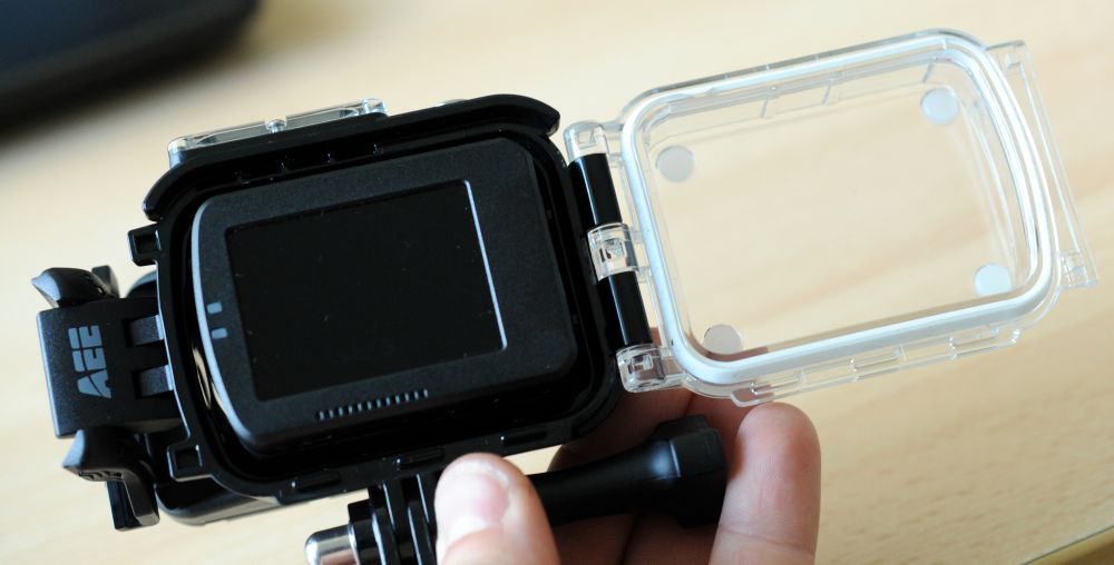 Samotná kamera není vodotěsná a musí být ve speciálním pouzdře, které ji chrání před vodou, prachem a mechanickým poškozením. V základním pouzdře je oproti konkurenci asi nejzásadnější rozdíl - je totiž velmi robustní a výrobce uvádí vodotěsnost až do sta metrů, což je výrazně víc, než nabízí jiní výrobci podobných kamer. Pouzdro je ze silného černého plastu a zadní dvířka z průhledného plastu. Těsnost zajišťuje silikonové těsnění a pevný zacvakávací zámek. Kamera v pouzdře dobře sedí a díky gumovým vymezením se v pouzdře nepohybuje a drží na svém místě. Průzor pro objektiv je zakrytý sklem, které je mnohem lepší než jakýkoliv plast, protože nezkresluje obraz a mnohem lépe odolává poškrábání. Na pouzdře jsou i další dva průzory, kterými jsou vidět přední diody kamery a malý horní displej. Na boku pouzdra je šroubovací zátka. Ta slouží k připojení speciálního USB-kabelu, který se zašroubuje místo zátky.Pouzdro je poměrně těžké, váží 130 gramů. Kamera spolu se zadním displejem a tímto pouzdrem váží bez několika gramů čtvrt kila a to už je například při umístění na hlavě znát. Naštěstí se dá dokoupit mnohem kompaktnější pouzdro, které je oproti tomuto mnohem lehčí (váží jen 67 gramů) a jehož vodotěsnost do deseti metrů je na běžné použití naprosto dostačující. Ve vodotěsném pouzdře jsou k dispozici tři ovládací tlačítka (zapnutí natáčení, stopnutí natáčení a fotografování). Současným stiskem druhých dvou tlačítek se kamera zapne a vypne.