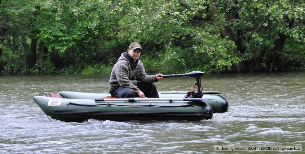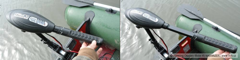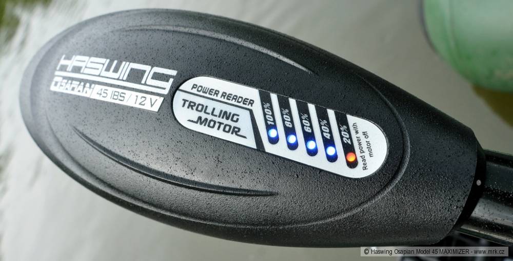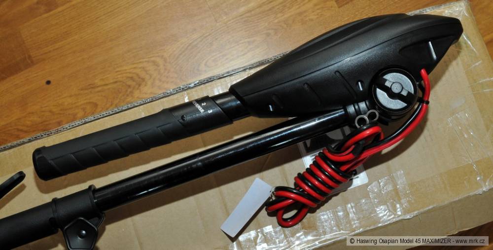 Motor je připojen k akumulátoru velmi silným dvojkabelem, který je také dost dlouhý na to, aby se baterie dala umístit pod sedačku. Jediné, co mě zarazilo, bylo zakončení kabelů jen očky. Byl jsem nucen sehnat svorky z akumulátoru do auta. Nevím, zda to je běžné, a je to vlastně drobnost, případně jedna menší investice na začátku navíc, ale když jsem pročetl stránky prodejce, zjistil jsem, že nabízí k těmto motorům akumulátory, které nemají klasické olověné kontakty, ale plochu se šrouby. Použití oček na kabelech tohoto motoru je pak pochopitelné. Během testu pracoval motor velmi dobře, krásně se ovládal po všech stránkách a i se starší baterií s malou kapacitou jezdil několik hodin na plný výkon. Zkoušel jsem měřit rychlost, jakou člun s motorem jede. Po několika měřeních mi vyšlo 50–55 vteřin na 100 metrů. Po přepočtení rychlosti mi vychází 6,5-7,2 kilometrů za hodinu, což je na elektromotor slušná rychlost. Motor jsem testoval na člunu „280“ s plochou špicí bez kýlu, člun byl zatížený jen baterií, motorem, pár věcmi s váhou do deseti kilo a mnou. Motor je velmi dobře zpracovaný, za použití kvalitních materiálů. Rozdíl v ceně klasické verze a verze s Maximizerem je při stejném výkonu přes čtyři tisíce korun. Na druhou stranu je lepší mít motor, který šetří baterie, než levnější motor a k němu několik rezervních baterií.