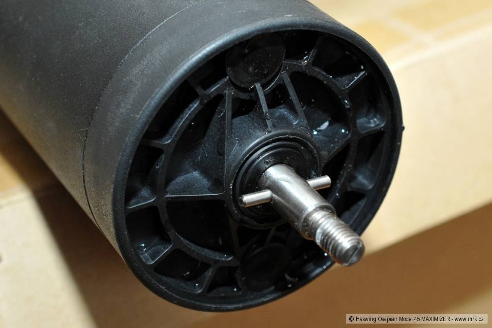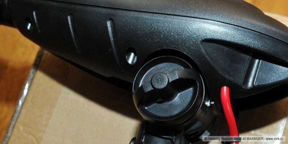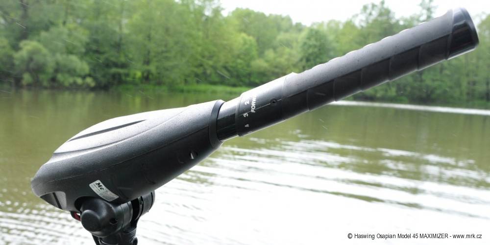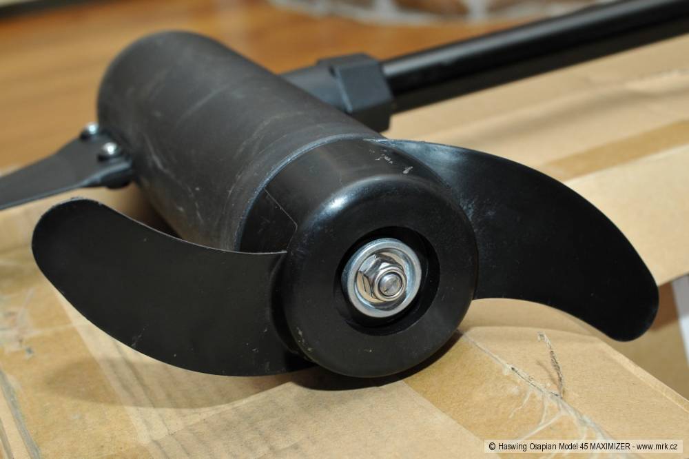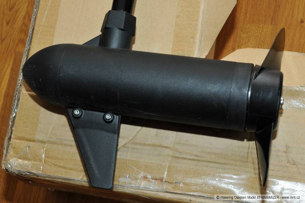 Samotný motor je uložený na konci ramene v pouzdře z hliníkové slitiny. Pouzdro tvoří několik dílů, které jsou k sobě těsně spasované. Má tvar válce se špicí z důvodu snížení odporu vůči vodě. Na spodní části je přimontované plastové „kormidýlko“, které slouží především jako ochrana vrtule. Z pouzdra je vyvedena nerezová hřídel o průměru 10 mm se závitem na upevňovací matku vrtule. Vrtule je dvoulistá a je vyrobená z plastu. Závlačka, podložka i matka k vrtuli jsou v balení dvakrát, pro případ ztráty.Motor je řízený elektronickým regulátorem, takzvaným Maximizerem, který optimalizuje výkon motoru tak, aby měl velký výkon, ale nízkou spotřebu energie. Podle výrobce zvyšuje Maximizer výdrž baterie až o 80 %, což se mi zdá těžko uvěřitelné, ale změřit to nemohu. Je pravda, že během testu baterie držela opravdu dlouho, ačkoli jsem měl vypůjčenou starou 80Ah baterii, která podle jejího majitele drží přibližně 70 % původní kapacity. Regulace otáček motoru řídicí pákou je plynulá, má pět rychlostí vpřed a tři vzad. Na horní straně motoru je panel pěti diod, které signalizují aktuální stav baterie v procentech (po 20 % stupních). Je to v podstatě voltmetr, protože napětí baterie odpovídá přibližně tomu, jak je nabitá. Čtyři diody jsou modré (40–100 %), pátá je červená (20 %). Ta signalizuje pokles na 10,5 V, což je napětí, pod které se nedoporučuje akumulátory vybíjet, protože to zkracuje jejich životnost a kapacitu.