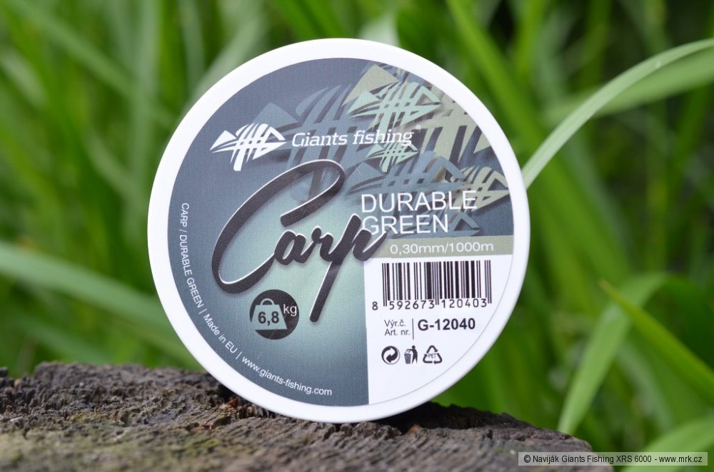 Spolu s navijákem jsem zkoušel i nový vlasec téže značky. Jednalo se o vlasec Carp Durable green, který byl vyvinut zejména pro lov kaprů. Vyznačuje se vysokou ohebností, malou tvarovou pamětí a zejména vysokou průtažností 20-25%, což tlumí prudké výpady ryb při zdolávání. Díky tomu ale nebude příliš vhodný pro delší vyvážení nástrah.