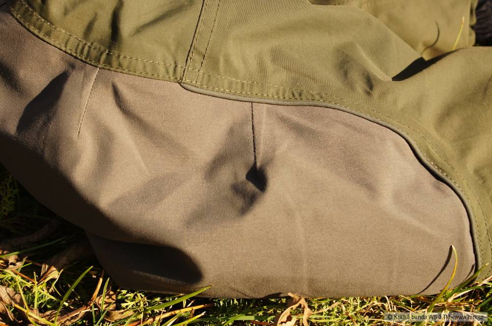 Ramenní a loketní část je vyztužená pro zvýšení mechanické odolnosti materiálem Dupont ® Cordura ®. Velkou předností bundy jsou jednodílná ramena. Čím méně stehů je na bundě, tím je větší její odolnost proti průniku vody. Současně s tím roste i Vaše schopnost vydržet déle na rybách i v ošklivém počasí. Obr.05