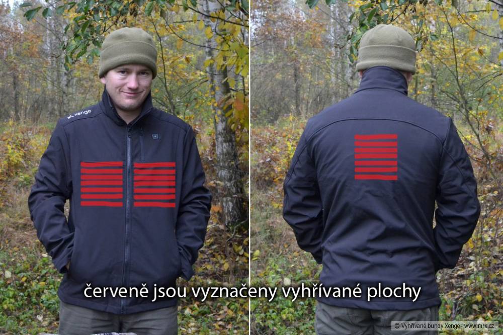Oblečení Xenge je vybavené vnitřním vyhříváním na principu uhlíkových vláken. Tato vlákna jsou všita v podšívce a propojena kabely. Bunda není vlákny protkaná celá, ale jsou v ní tři vyhřívané plochy o velikosti 17 x 17 cm: dvě jsou na prsou a třetí je uprostřed zad. Uhlíková vlákna i drátky jsou tenké a ohebné, takže vůbec nejsou cítit a nesnižují pohybové možnosti bundy. Systém vyhřívání je napájený lithium-polymerovým akumulátorem s napětím 7,4 V a kapacitou 4400 mAh. Akumulátor má rozměry 7 x 8 x 2 cm a váhu pouze 150 g. Životnost baterie je kolem 300–500 nabíjecích cyklů. Baterie je ukrytá ve vnitřní kapsičce nad spodním okrajem bundy vlevo vedle zipu. Akumulátor je potažený neoprenem, který ho chrání proti případným nárazům. Ovládání k vyhřívání je na vrchní straně bundy. Je to podsvícené gumové tlačítko, kterým se vyhřívání zapíná, vypíná a mění se jím intenzita. Zapnutí nebo vypnutí se provádí stlačením tlačítka na dobu tří vteřin. Intezita vytápění se mění jen stisknutím tlačítka a signalizuje ji barva podsvícení. Vyhřívání má tři stupně: 1. stupeň (zelené podsvícení) vyhřívá na teplotu kolem 40 °C; 2. stupeň (oranžové podsvícení) vyhřívá na teplotu kolem 50 °C; 3. stupeň (červené podsvícení) vyhřívá na teplotu kolem 60 °C. S vyšší teplotou vyhřívání je samozřejmě spojena i větší spotřeba energie. Výdrž akumulátoru na stupeň 1 je šest hodin, na stupeň 2 je to 5,5 hodiny a při nastavení na stupeň 3 asi čtyři hodiny.Co mě překvapilo, je to, že bunda se smí prát, i když pouze v ruce a jen poté, co jste vyjmuli baterii a zakrytí konektoru, kterým se baterie připojuje. Celý systém vyhřívání je totiž vodotěsný a jediným „rizikovým místem“ je právě konektor k připojení baterie. Rizikové je toto místo v tom smyslu, že se jedná o jedinou část, kterou nelze odizolovat, a je proto lepší ji při praní zakrýt.