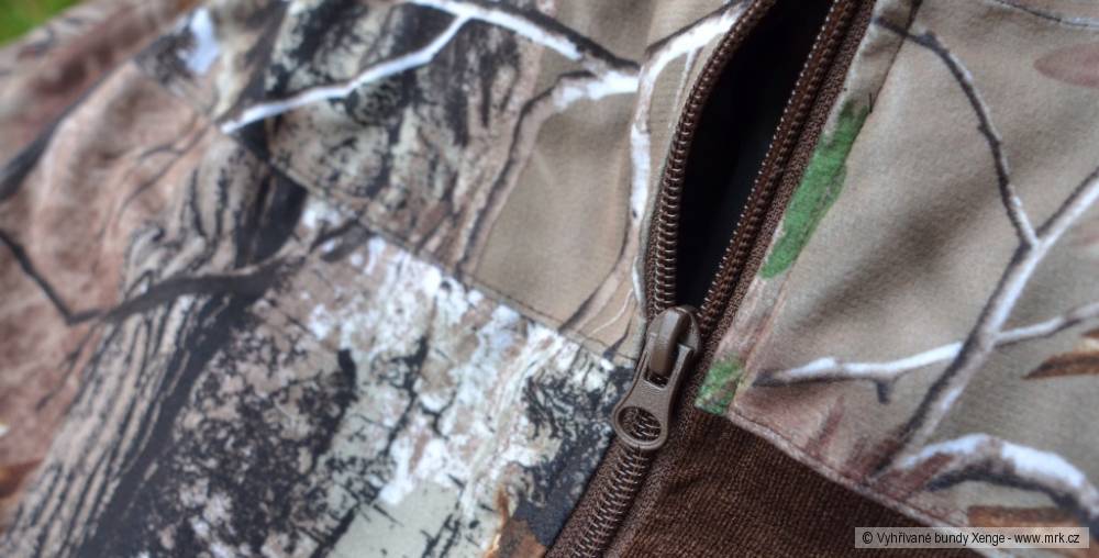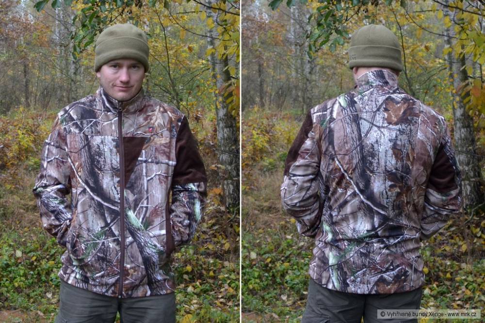 Tato bunda je také z materiálu Softshell, ale z trošku odlišné varianty. Na povrchu jsou jemné chloupky. Maskovací vzor napodobuje listnatý les velmi dobře a do našich klimatických podmínek opravdu zapadá, především na podzim. Na levé straně má bunda všité hnědé prvky (rameno, bok a vpředu vedle zipu), asi kvůli „rozbití“ jednolitosti maskáčového vzoru. Osobně by se mi bunda více líbila bez hnědých prvků, ale to je otázkou vkusu každého jedince. Střih je téměř totožný s předchozí bundou, ale tato má pouze dvě kapsy na ruce. Jako rybář bych jich určitě ocenil víc.
