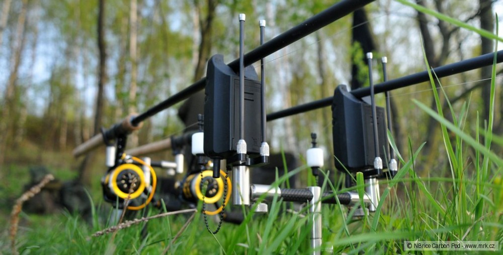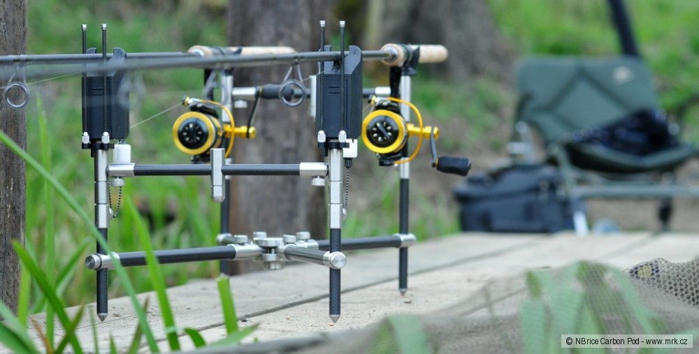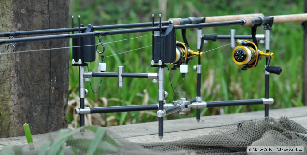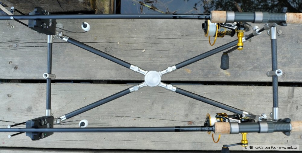 Konstrukčně se jedná o rodpod vhodný především k použití na stojatých vodách. Není ovšem problém použít ho také na řece, jen nedáte špičky k nebi. Na rodpodech můžete totiž jen málokdy nastavit pruty špičkami k nebi, což je například na řekách nebo dlouhých vyvážkách na větších vodách občas potřeba. Carbon Pod je vlastně kombinací klasických vidliček a hrazd spojených křížovou konstrukcí. Díky tomu je stojan velmi stabilní a pomocí výsuvných vidliček ho bez problémů postavíte i v nerovném terénu. Omezujícím prvkem je jen délka výsuvné části vidliček, která činí u kratších vidliček 6 cm a u delších 11 cm. Vidličky jsou ale umístěné kolmo k zemi, takže prodloužení je větší, než se na první pohled zdá. Celková délka vidliček dodávaných se stojanem je 15 cm a 20 cm po dvou kusech od každé. Vidličky jsou zakončené nerezovým hrotem. Podle informací dodavatele je možné přidat ke stojanu na přání zákazníka i vidličky v jiné délce, což ovšem samozřejmě změní cenu stojanu.Hrazdy jsou stejně jako vidličky v kombinaci uhlíku a nerezu. Hrazdy mají šířku 25 cm a 27 cm a dají se roztáhnou až na 39,5 cm a 43,5 cm. Výsuvné tyčky jsou na spodní straně obroušené na plošku. Díky tomu jsou po dotažení všechy závity v jedné rovině. Hrazdy mají závity pro tři hlásiče (rohatinky). Oproti běžným hrazdám mají hrazdy dodávané s tímto stojanem tři spodní závity na připojení vidliček. Dva krajní závity se používají při sestavení stojanu a prostřední závit slouží k připevnění hrazdy samostatně na jednu vidličku. Závity na přišroubování hlásičů a rohatinek nemají žádnou dotahovací matici, což je škoda, když jinak je stojan celkově velmi dobře promyšlený a dokonale zpracovaný. K dotažení hlásiče do správné pozice je tedy třeba na šroub hlásiče nasadit gumový kroužek, který nějakou vůli vyplní, a nebo použít dotahovací kroužek na šroubu hlásiče. Kvůli tvaru mých hlásičů a velikosti jejich dotahovací matky si musím s montáží chvilku pohrát, než se mi podaří dotáhnout hlásič do správné polohy. Dotahovací šrouby nebo matice z hrazd stojanů mizí stále častěji i u jiných výrobců, což je škoda, a u takto propracovaného stojanu mě to mrzí. Na druhou stranu je to jediný nedostatek, který jsem na stojanu našel.
