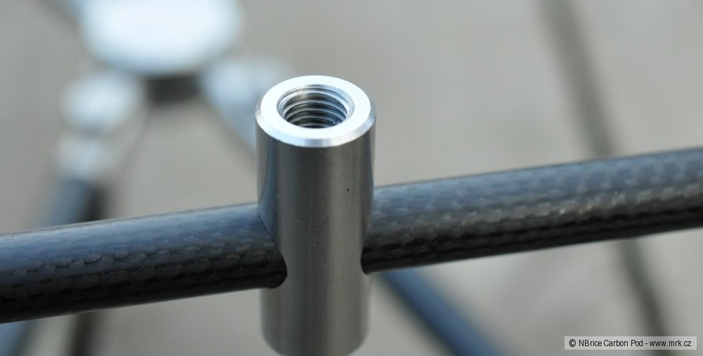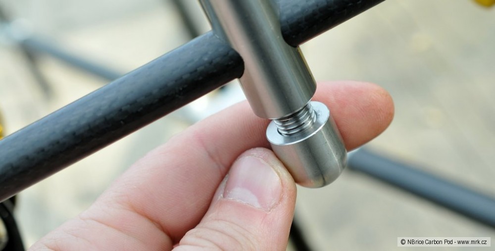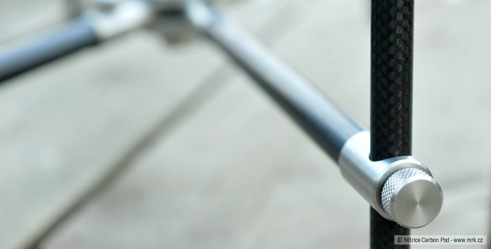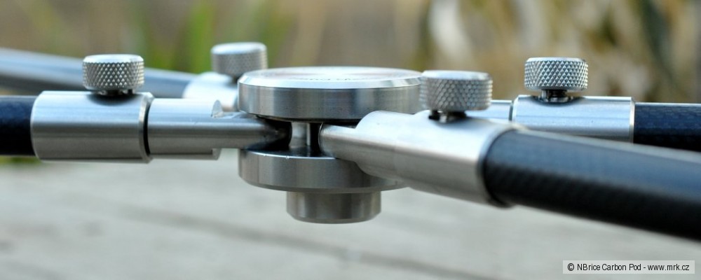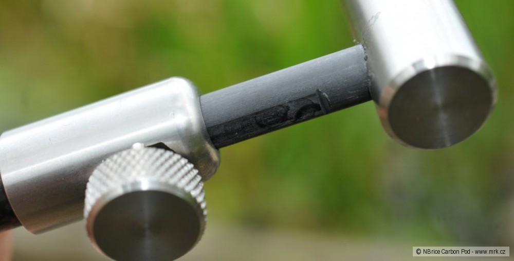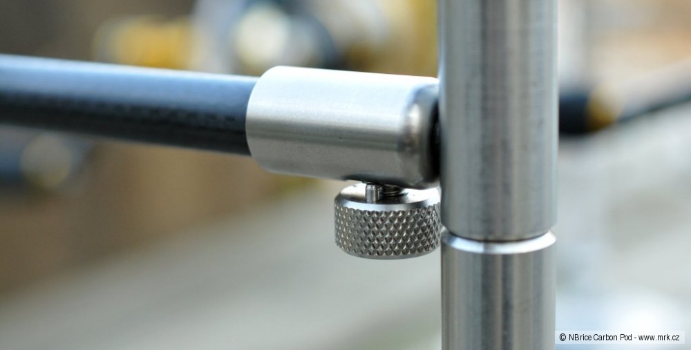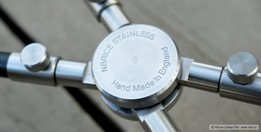 Carbon Pod, jak už název napovídá, je z velké časti vyroben z uhlíku. Veškeré tyčky a trubičky jsou vyrobeny právě z velmi pevného uhlíku, který na pohled připomíná blank prutu, ovšem stěny těchto částí jsou mnohem silnější než u prutů. Stěny trubiček mají tloušťku 2 mm a výsuvné tyčky na hrazdách a vidličkách jsou z plných tyček o průměru 8 mm. Trubičky na hrazdách a vidličkách mají vnější průměr 12 mm a silnější trubičky na kříži stojanu mají 16 mm. Uhlíkové části mají matnou povrchovou úpravu. Veškeré ostatní části, jako je kříž, spoje, závity, hroty vidliček a podobně, jsou z nerezu. Nerezové části jsou velmi precizně zpracované.Základem stojanu je masivní nerezový kříž, na který jsou připojeny čtyři výsuvné tyče z uhlíku. Na středu kříže je vybroušený nápis NBRICE STAINLESS a „Hand Made in England“, tedy vyrobeno ručně v Anglii. Kříž je velmi pevný a nemá žádné vůle. Co se mi opravdu líbí, jsou aretační šrouby, které se nedají ze stojanu vyšroubovat úplně, takže je nemůžete ztratit, což se mně osobně stávalo u běžných vidliček vcelku často. Šroubem se dá točit v rozsahu „jen“ 180 °, což stačí k povolení i dotažení daného spoje. Omezení je zajištěno kolíčkem pod hlavou šroubu a výbrusem v nerezovém pouzdře.