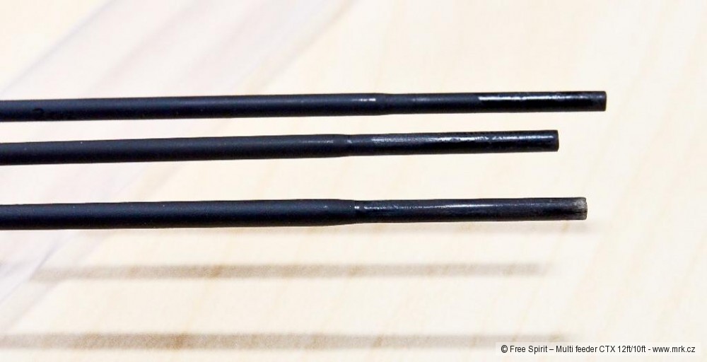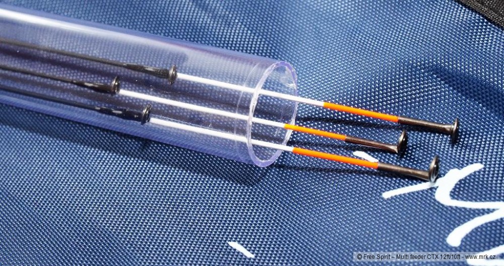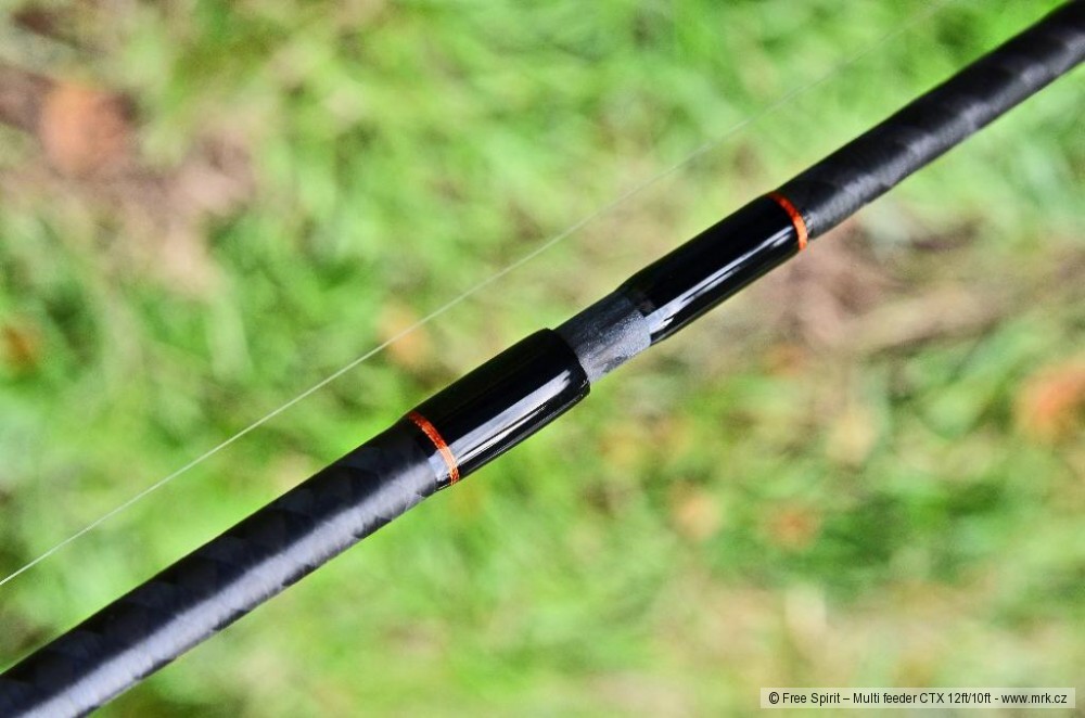 Free Spirit patří už řadu let k absolutní špičce mezi výrobci kaprových prutů a se svými feederovými pruty nijak nezaostává. Hlavním důvodem je kvalita. Typický pro pruty Free Spirit je dokonalý nelakovaný matný povrch blanku a precizní zpracování. Tyhle pruty vypadají i po mnoha hodinách a letech u vody stále jako nové. Feederové pruty jsou postaveny na nových blancích CTX, díky čemuž jsou rychlé, přesné a lehké. Už rok mám v užívání prut Multi Feeder CTX 12ft/10ft. Je to krásný, rychlý prut, který se dá ze 306cm pomocí vsuvného dílu snadno prodloužit na 368cm. Bohužel ne bez nutného odstranění koncové sestavy, protože vsuvný díl má očko.