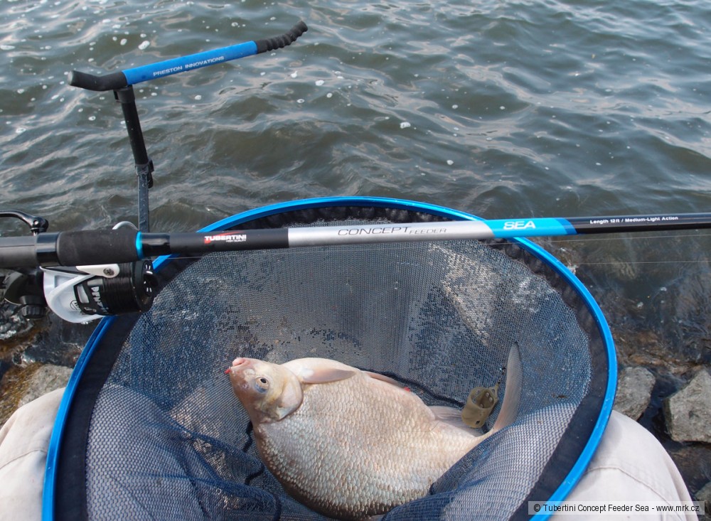 Prvním z nich je Tubertini Concept Sea - v mém případě v délce 3,6 metrů a ohebnosti medium-light. Tento prut je původně určen pro italský trh a jejich styl chytání menších ryb na feeder na moři v přístavech a uzavřenějších mořských zátokách (viz video níže). Pro nás asi těžko představitelné, ale faktem je, že se jim povedlo udělat prut, který je fantastický i pro naše sladkovodní chytání. Chvíli mi to trvalo, přecejen prut určený na moře a ještě s takovým divokým designem, ale pokud se přes tohle přenesete, tak máte neuvěřitelný prut pro naše sladkovodní chytání. Jeho hlavní působiště jsou stojaté a mírně tekoucí vody, kde si vystačíte s krmítky do 60 gramů. Dokáže hodit 50 gramové krmítko s návnadou na 50 metrů, nebo s pletenkou menší 40 gramové přes 60 metrů. Přitom je to "nahoře" velmi jemný prut.