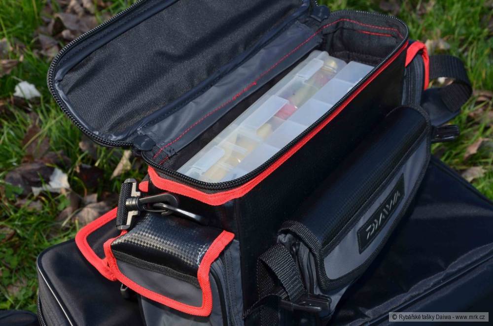 Velmi oblíbenými zavazadly jsou tašky středních a menších velikostí, které ocení především rybáři upřednostňující kratší vycházky. Pro ty jsou tu dva modely ve velikosti L a S. Větší model je ideální pro rybáře lovící na položenou, plavanou a feeder, kdežto menší je ideální například na přívlač. Obě tašky jsou pevné, opět z kvalitního vodoodpudivého materiálu s nastavitelným ramenním popruhem a s mnoha kapsičkami na spoustu drobností, které tak můžete mít velmi přehledně uspořádané. Tašky se vyznačují kvalitními zipy, dvojitou horní chlopní zajišťující absolutní nepromokavost a designem karbonových vláken. Obě tašky pojmou mnoho krabiček a plastových boxů či jiných potřebných věcí. Větší taška velikosti L má kapsy, do kterých se vejdou nové boxy na nástrahy Daiwa 210.Pokud potřebujete uložit hodně nástrah do malého prostoru, bude se vám líbit model, do kterého se vejdou dva plastové boxy velikosti 318 x 240 x 25 mm. Na krátkou návštěvu vody s vláčecím prutem potřebujete jen tuto tašku, vestu, do které uložíte doklady, pár drobností a můžete vyrazit. Tato taška je opět v hezkém designu karbonových vláken, z voděodolného materiálu a s nastavitelným ramenním popruhem. Zabere skutečně jen málo místa a je vhodná třeba i do lodě.