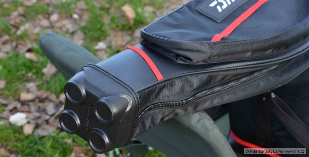 Dalším zavazadlem této řady je lehká menší taška se snadným přístupem shora do jednokomorového úložného prostoru a se dvěma menšími vnějšími kapsami na drobnosti překrytými chlopní a zajištěnými suchými zipy. Dále je tu ještě jedna kapsa na zip vhodná třeba na doklady. Nošení přes rameno usnadní nastavitelný ramenní popruh. Taška je vhodná na lov přívlačí a kratší vycházky k vodě.Velmi důležité je pro rybáře ochránit svůj prut. Zde Daiwa nabízí polotvrdý obal z voděodolného materiálu ve třech velikostech, a to v délkách 127 cm, 145 cm a 157 cm. Jedná se o jednokomorový obal, ale můžete do něj uložit jeden až dva pruty i s navijáky, případně několik prutů bez navijáků.