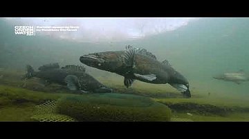 Podvodní záběry candátů, připravujících se ke tření na umělé hnízdo.
