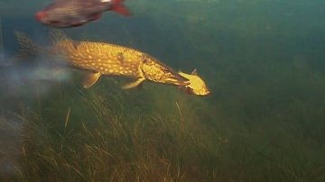 Štika útočí na rybku ale pak se to zadrhne