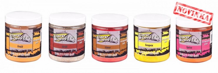 Práškové dipy Carp Only jsou dodávány ve 100g dozičkách. Jsou složeny z komplexních ingrediencí, které zvyšují chuť a vůni Vaší nástrahy. Tyto kvalitní složky, včetně sladkých a kyselých atraktorů se dokonale a smysluplně doplňují a u kapra podporují příjem potravy. Namočením nástrahy do vody a následném obalení nástrahy v suchém dipu získáte mimořádně atraktivní nástrahu.