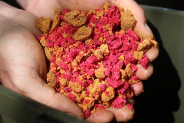 Pelety vyrobené pro vnadění v průměru 15 mm jsou sladkým rybím cukrátkem. Tahle skladba je na trhu jedinečná. Základem je kukuřičný šrot, který ryby rozhodně dobře znají a pak jen samé neodolatelné rybí dobroty. Jako sladidlo jsme použili glukózu, betain a oplatek je jako třešnička na dortu. Oplatky po provnadění okamžitě narušují pelety, uvolněný mrak láká ryby a udržuje na lovném místě.