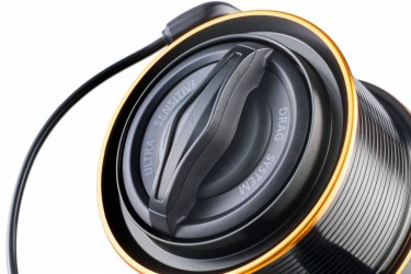 Robustní velkokapacitní naviják s volnoběžným brzdovým systémem vhodný pro lov na velké vzdálenosti z odhozu nebo z vyvážky. Představuje ideální volbu pro všechny kapraře, kteří hledají velký, nadstandardně vybavený, kvalitní a spolehlivý naviják v nižší cenové kategorii. Tuhé a pevné tělo z grafitové slitiny je osazeno masivním šnekovým převodem a devíti zapouzdřenými nerezovými ložisky. Rozměrné cívky zajišťují velký návin na otáčku (více než 1m). Excentrická úchytka kličky zajišťuje mimořádně stabilní a pohodlný úchop. K navijáku jsou dostupné náhradní cívky ve třech různých kapacitách od mělké odhozové až po extrémně hlubokou (dodáváno samostatně).