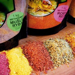 Krmení má hrubou strukturu, výraznou vůni a složení směsi je pro rybu maximálně pestré a atraktivní. Příchuť Říční kapr je více lepivá pro lov v proudu. Po navlhčení se s Method feeder mixem dobře pracuje a po vymáčknutí z formičky drží tvar.