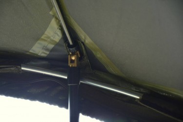 - 2 přední bouřkové tyče + 2 boční tyče + propínací skládací hliníková tyč v přední části brolly nad vchodem (dokonale zpěvní celý systém)