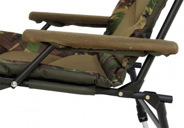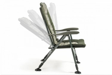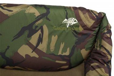 Toto křeslo má polstrovanou část s termoizolační vrstvou, která je v kombinaci fleece a kamuflážová látka. Loketní opěrky, které jsou osazeny fleecovými návleky dělají tuto židli ideální pro dlouhodobější pobyt u vody. Čtyři výškově nastavitelné nohy, s otočnými a velkými pacičkami zabraňující zaboření do bláta.